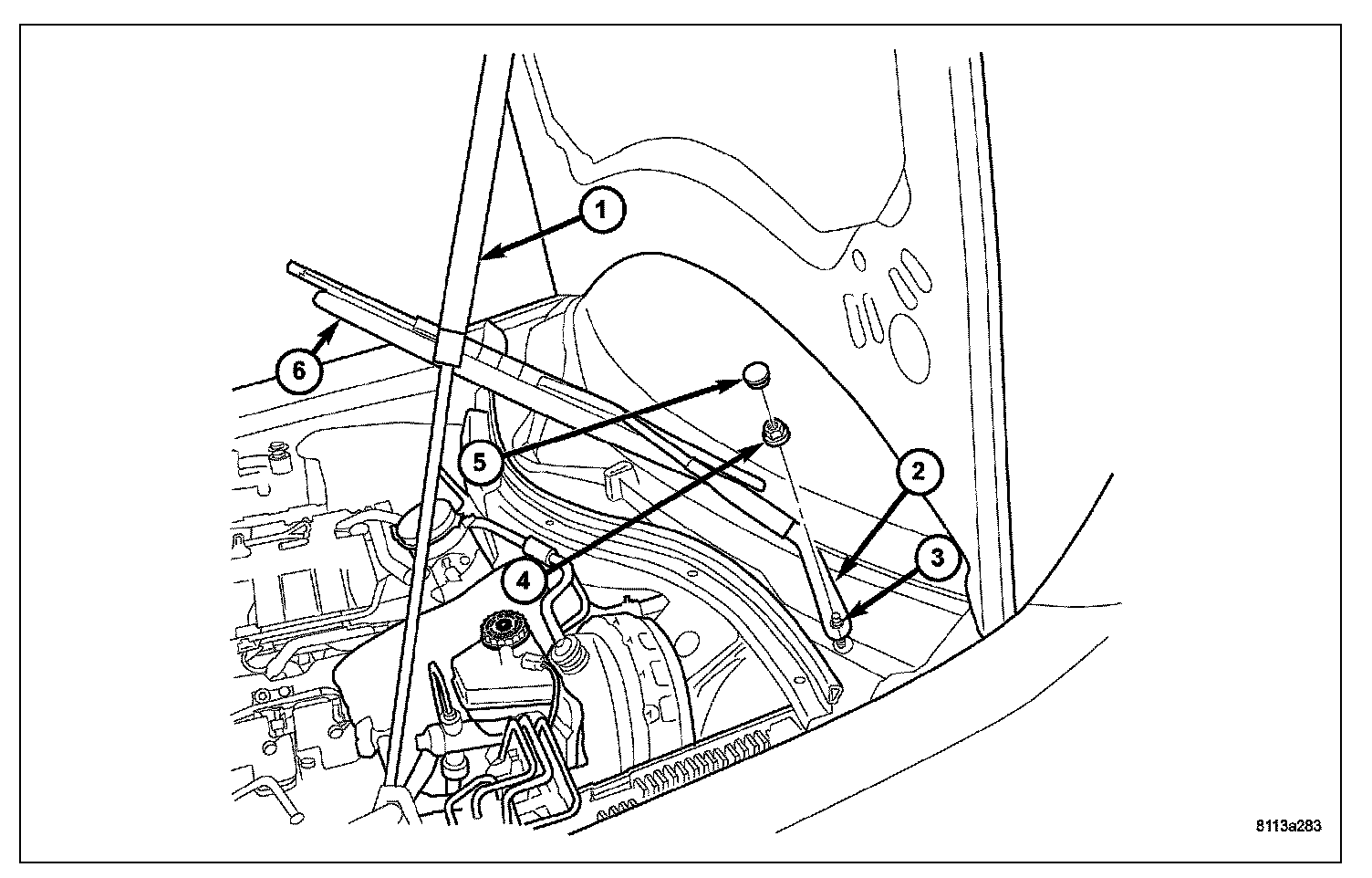 REMOVALWARNING: THE WINDSHIELD WIPER MECHANISM CAN PINCH, CRUSH OR, IN EXTREME CASES, EVEN SEVER EXTREMITIES. ALWAYS REMOVE THE IGNITION KEY WHEN WORKING ON WINDSHIELD WIPER MECHANISM.