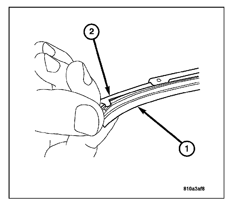 3. Install the retainer springs (1) by sliding the springs onto the edges of the wiper blade.