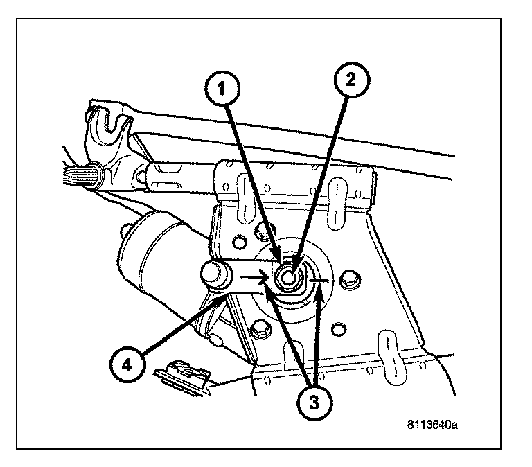 4. Scribe a reference mark (3) on both the wiper module and the crank arm for proper alignment during reassembly.