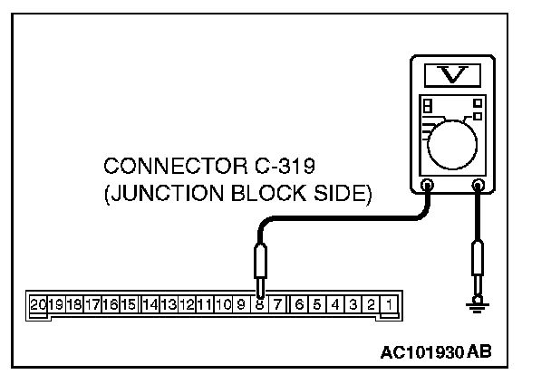 1. Disconnect ETACS-ECU connector C-319 and measure the voltage available at the junction block side of the connector.