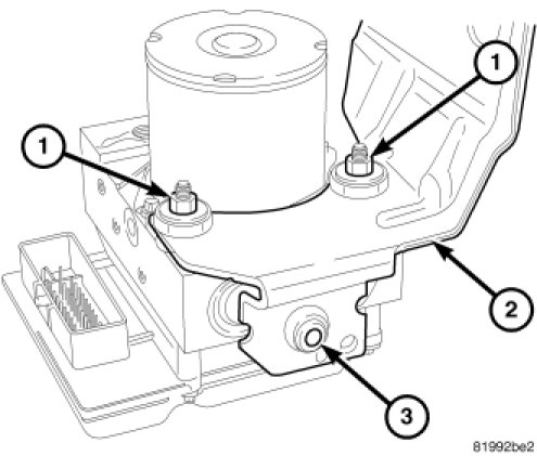3. Install four screws (1) attaching ABM to HCU. Tighten mounting screws to 6 Nm (53 in. lbs.).
