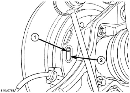 NOTE: Through the access hole (2), rotate the adjuster star wheel in the following direction to expand the shoes outward against the drum.