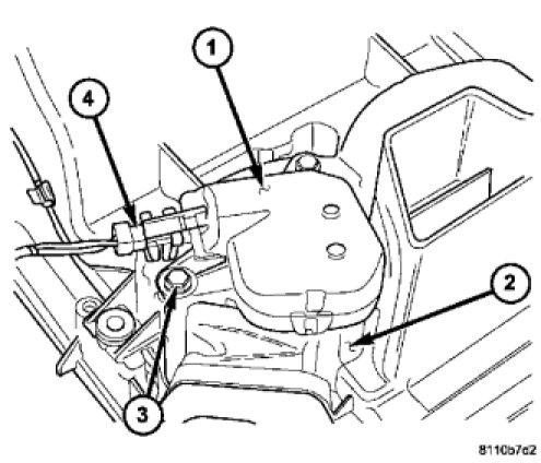 4. Remove the two screws (3) that secure the mode door actuator to the rear blower motor housing (2) and remove the actuator.