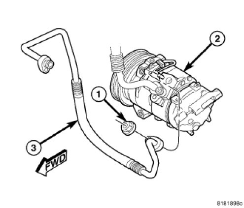 4. Connect the A/C discharge line to the A/C compressor (2).