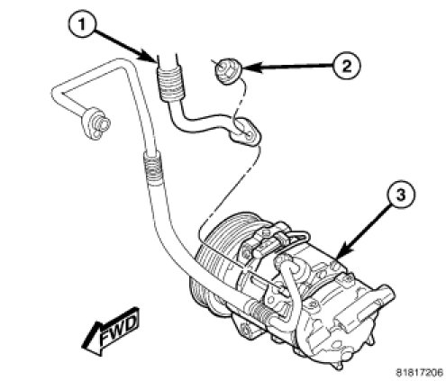 NOTE: Replacement of the refrigerant line O-ring seals and gaskets is required anytime a refrigerant line is opened. Failure to replace the rubber O-ring seals and metal gaskets could result in a refrigerant system leak.