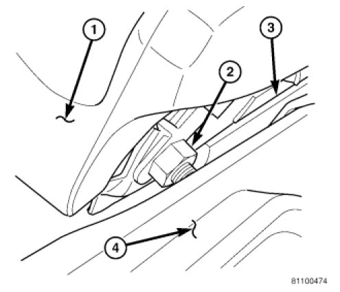 2. Install the buckle half retaining nut (2). Tighten nut to 40 Nm (30 ft. lbs.).
