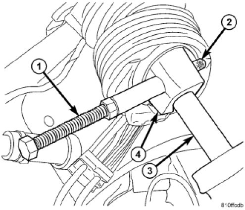 a. Insert Remover (1), Special Tool 6831A, through roll pin fastening intermediate shaft extension to power steering gear.