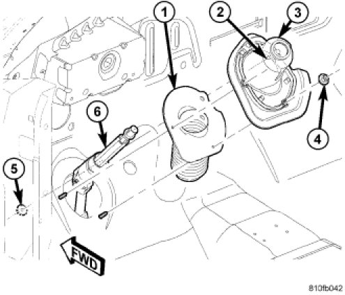 3. Slide intermediate shaft silencer shell (3) over intermediate shaft (6) and onto studs on dash panel while inserting lower mounting stud though cover and dash panel.