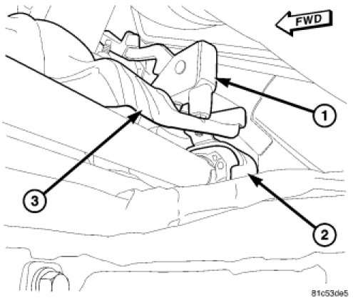 13. On vehicles equipped with 4.0L engine, if servicing right inner tie rod and heat shield is still riveted to stabilizer bar cushion retainer , install right stabilizer bar cushion retainer with heat shield over stabilizer bar cushion and shield over steering gear. Install cushion retainer mounting bolts and tighten to 54 Nm (40 ft. lbs.).