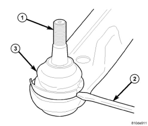 2. Using a screwdriver (2) or other suitable tool, pry seal boot (3) off ball joint (1).