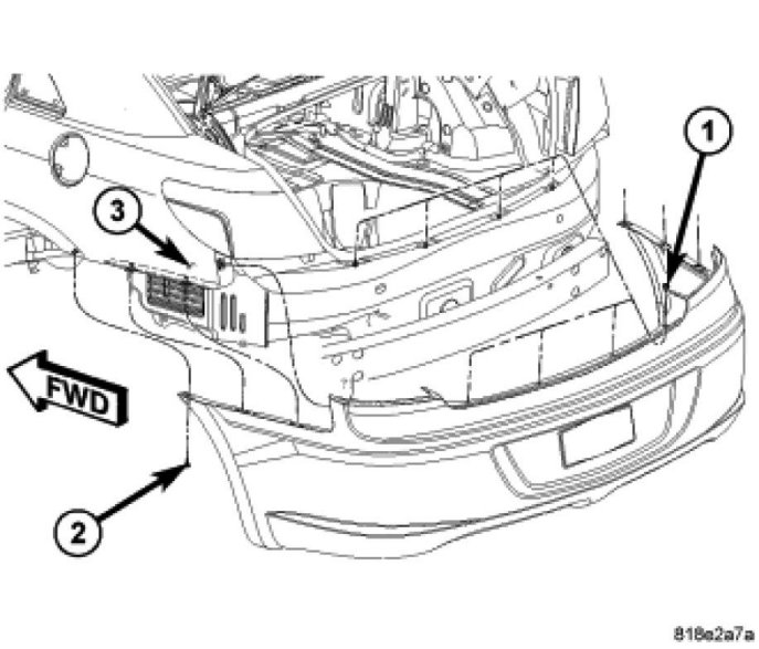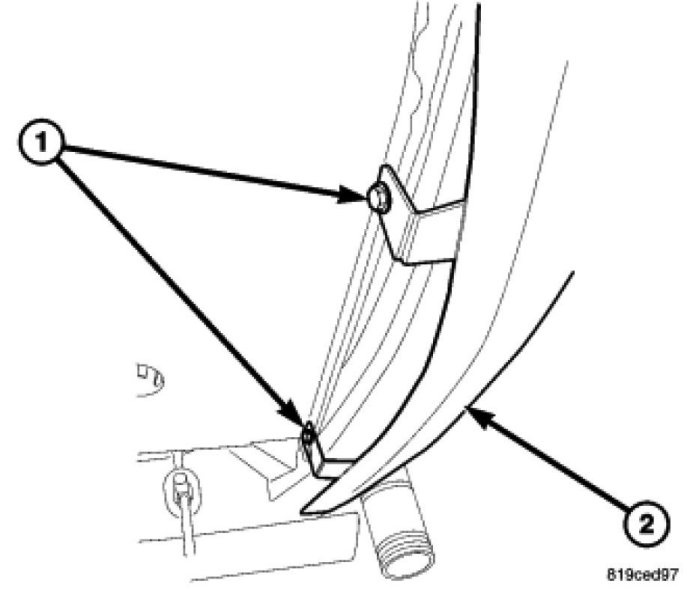 3. Remove two wheelhouse fasteners and pull back splash shields exposing fascia to fender hidden fastener (1).