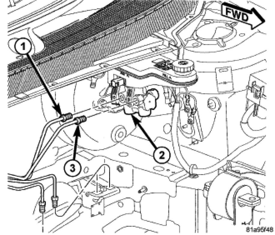 8. Connect the primary (1) and secondary (3) brake tubes to the master cylinder (2) outlet ports. Tighten the tube nuts to 17 Nm (150 in. lbs.).