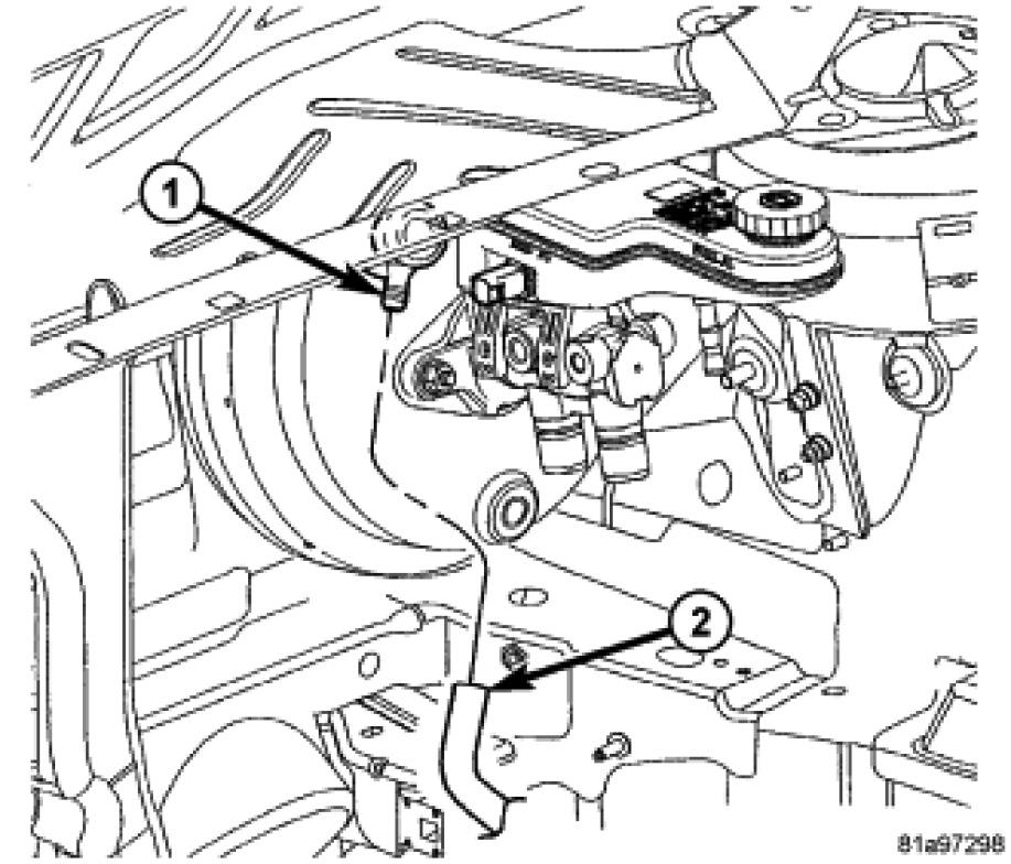 5. Disconnect the vacuum hose (2) from the check valve (1) on the power brake booster. Do not remove the check valve from power brake booster.