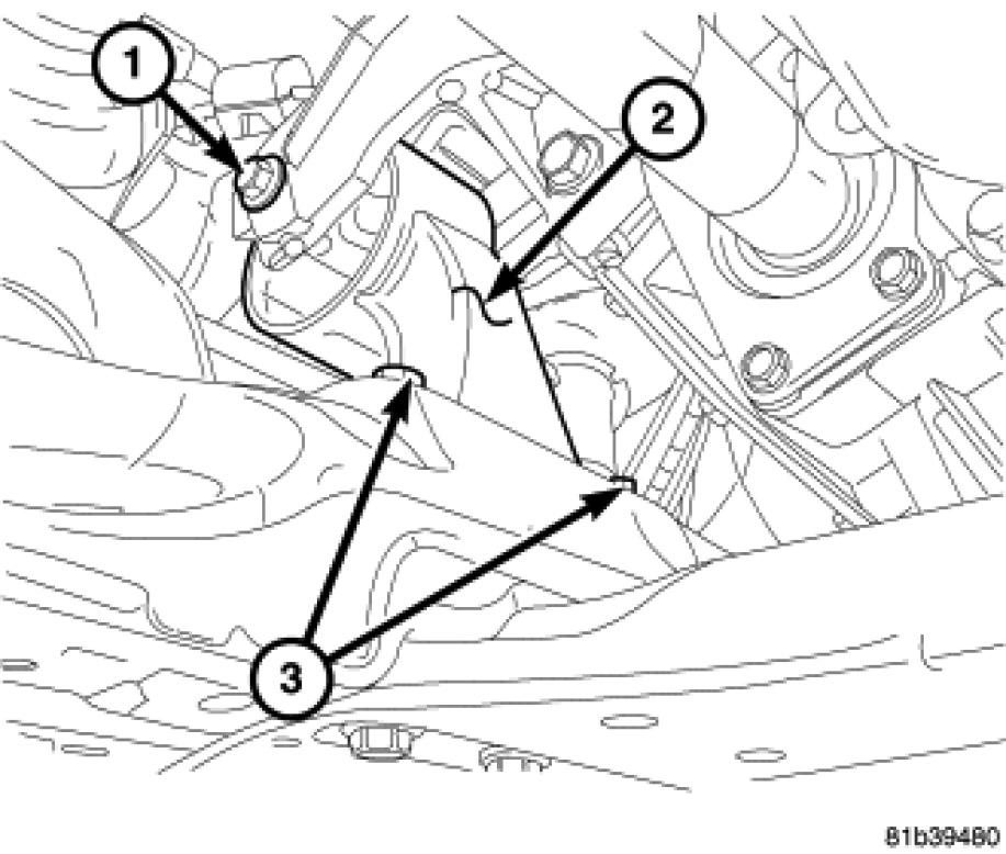 4. Install rear mount retaining bolts (3) and torque to 50 Nm (37 ft. lbs.).