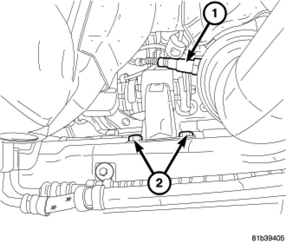 2. Install rear mount retaining bolts (2) and torque to 50 Nm (37 ft. lbs.).