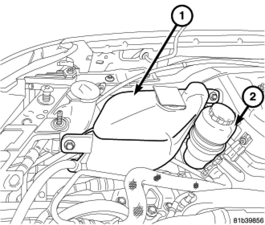 1. Remove coolant reservoir (1) and set aside.