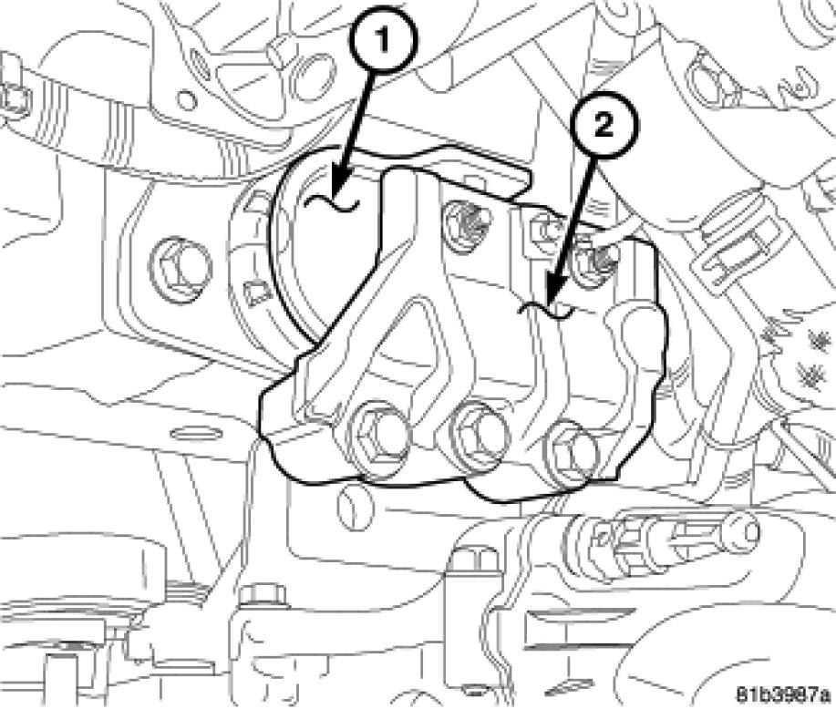 4. Remove engine mount bracket (2) retaining bolts.