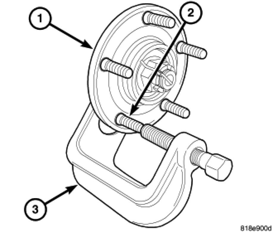 CAUTION: Do not hammer wheel mounting studs out of the hub. Damage to the wheel bearing will occur, leading to premature bearing failure.