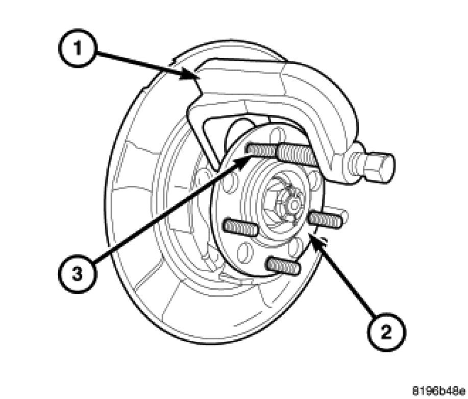 CAUTION: Do not hammer wheel mounting studs out of the hub. Damage to the wheel bearing will occur, leading to premature bearing failure.