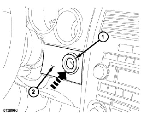 4. Position the ignition switch bezel (1) into the cluster bezel (2).