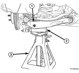 46. If equipped with SRT8 disc brakes, on each rear disc brake, remove jack from under spring link.