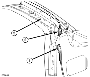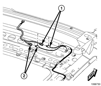 1. Connect the antenna connectors(1) (2). Route and secure the new antenna harness along the same route as the old antenna cable.