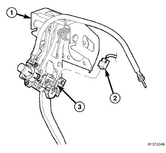 7. Connect wiring connector (2) at brake pedal position sensor (3).