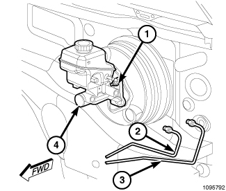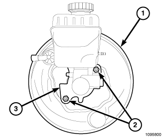 3. Position master cylinder (3) on studs of power brake booster, aligning booster push rod with master cylinder piston.