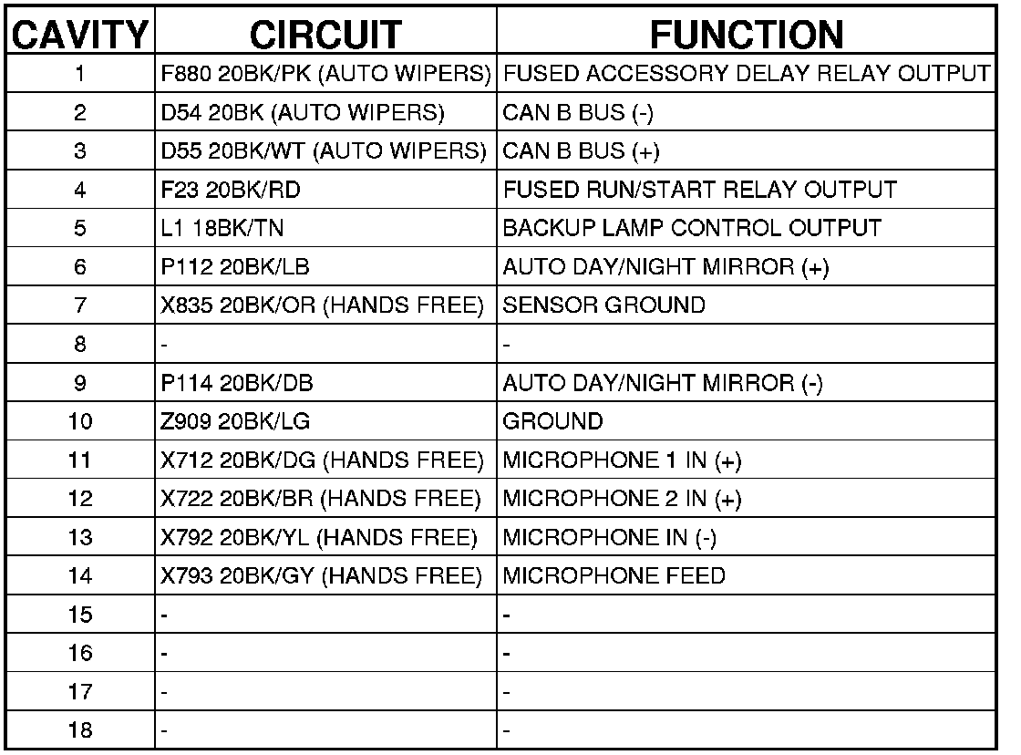 C205 (EXCEPT BASE) - (INTERIOR MIRROR JUMPER SIDE) 18 WAY