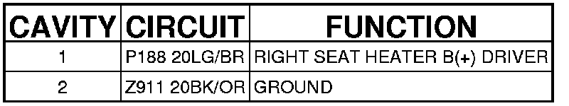 Right Seat Back Heater (Front Seat Back Jumper) 2 Way
