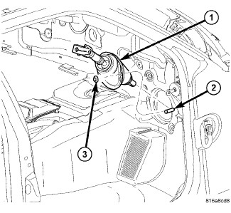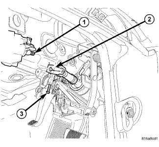 4. Install a NEW steering intermediate shaft pinch bolt (3). Tighten the pinch bolt to 31 Nm (23 ft. lbs.).