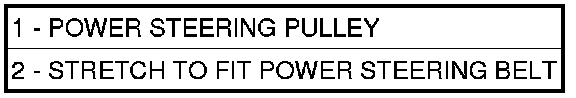 4. While rotating the crankshaft clockwise, walk the power steering drive belt (2) off of the power steering pulley (1).