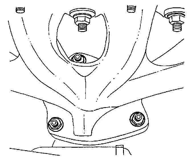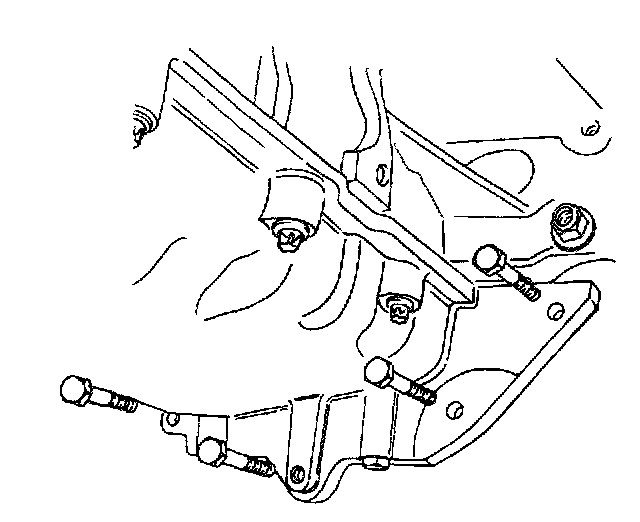 4. Remove the auxiliary catalytic converter upper flange nuts from the exhaust manifold and the support bracket bolts.
