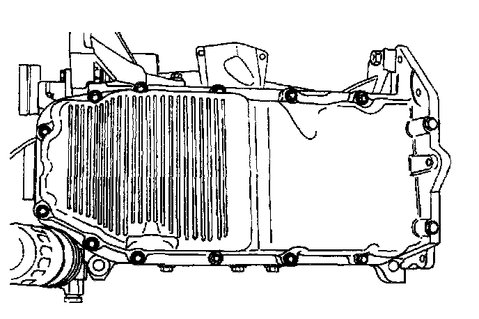 Tighten the oil pan retaining bolts to 10 Nm (89 inch lbs.).