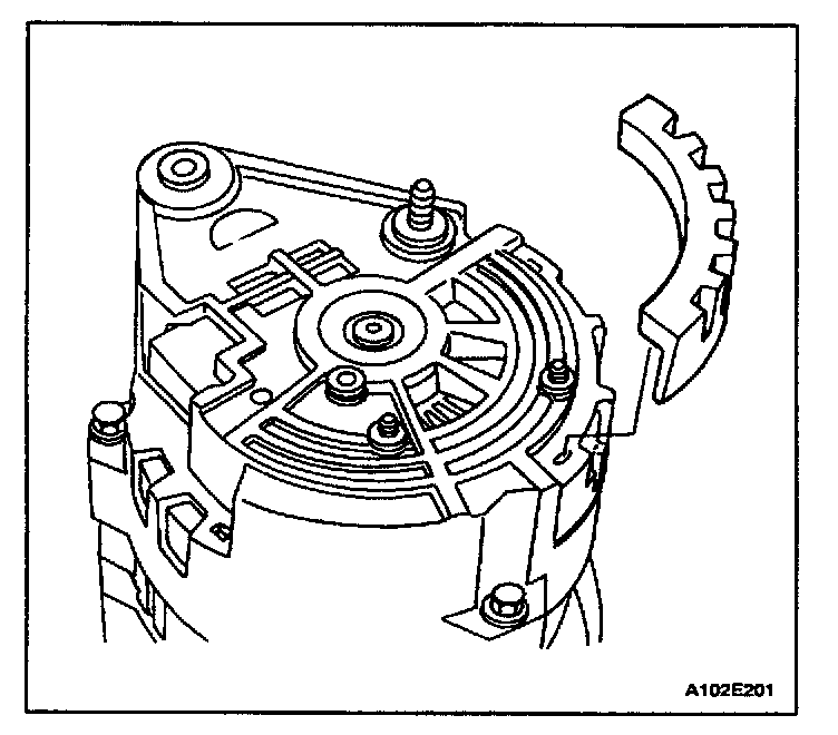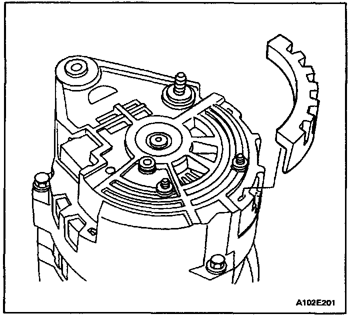 6. Fasten the screws holding the rectifier regulator/brush holder assembly to the end frame.