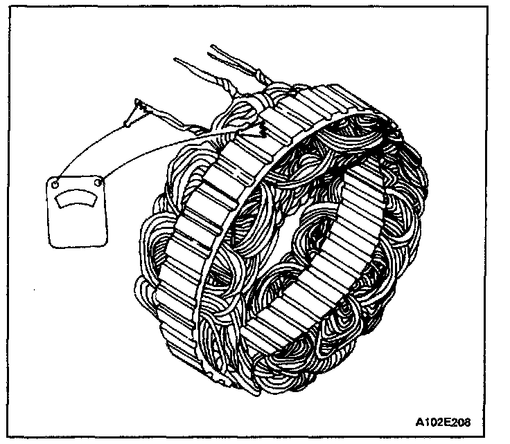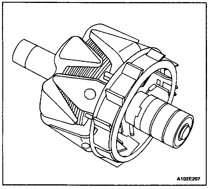 10. Test the rotor for open and short circuits. The reading should be 1.7 to 2.3 ohms, or the rotor should be replaced.