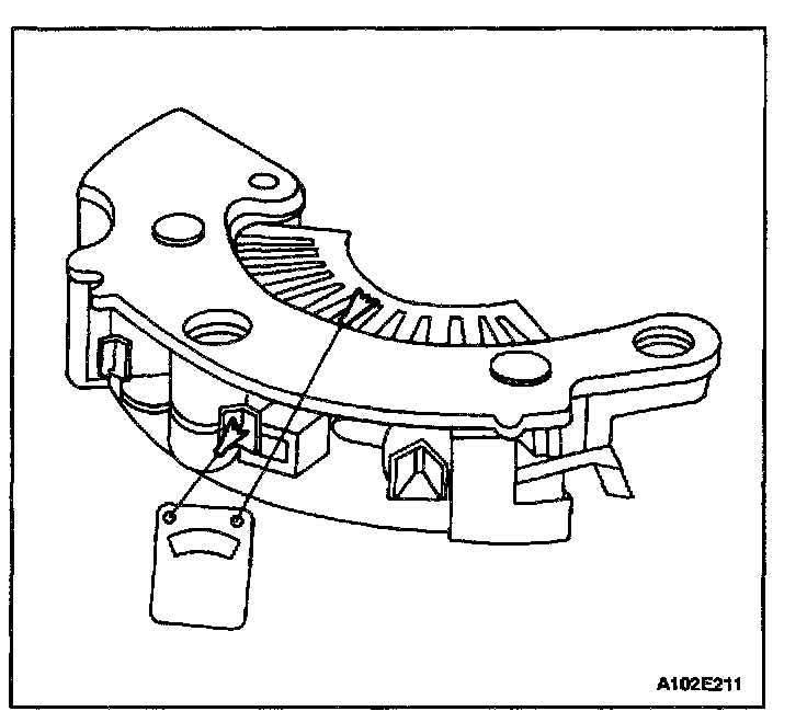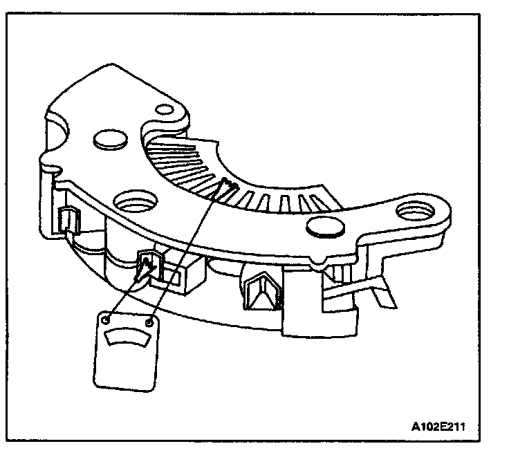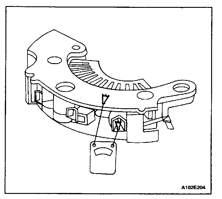 4. Fix the brush holder with the retainer pin, and weld the regulator/brush holder assembly terminal to the rectifier terminal.