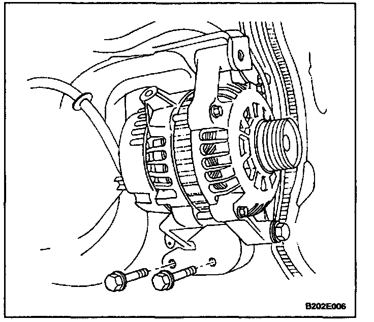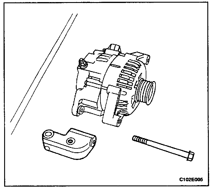 2. Install the generator and the lower support bracket assembly to the engine block.