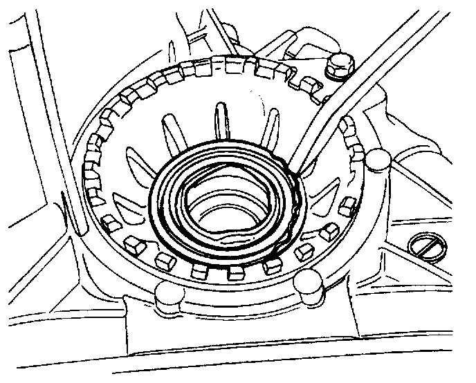 Notice: Do not damage the bearing adjusting ring with the pry bar.