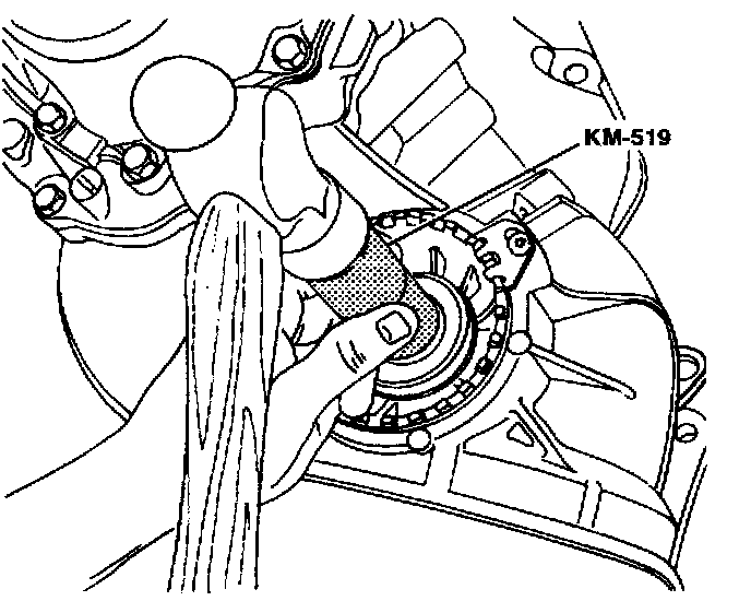 1. Install the new drive axle seal using the ring installer KM-519 and a hammer.