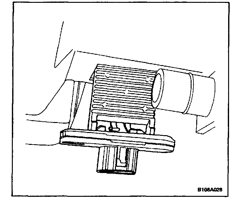 6. Remove the resistor from the heater/air distributor case by gently pulling the resistor downward.