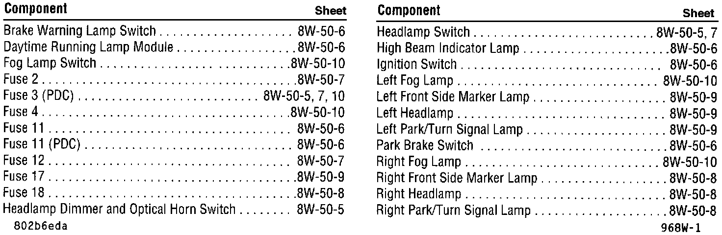 Front Lighting Diagram Index: