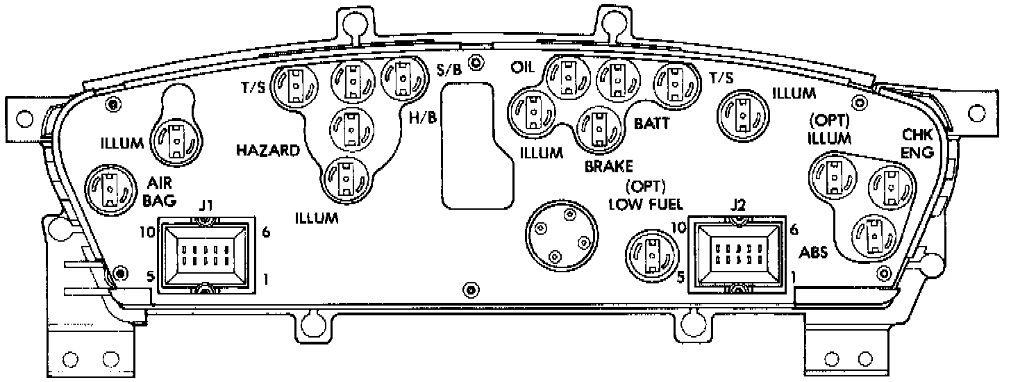 The Instrument Cluster illumination Lamps location are shown. The cluster is viewed from the rear. To replace lamp(s), the cluster must be removed.