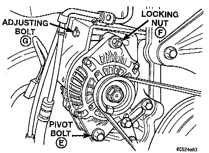2. Tighten adjusting bolt G. Adjust belt tension to specification.