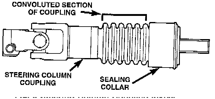 - Inspect the convoluted section of the steering column coupling for the following conditions or any other visible signs of damage.