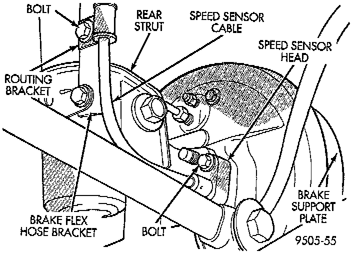 8. If vehicle is equipped with ABS brakes, install speed sensor head into rear brake support plate or disc brake adapter. Torque speed sensor head mounting bolt to 7 Nm (60 inch lbs.).