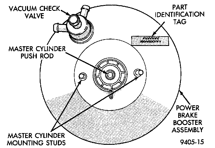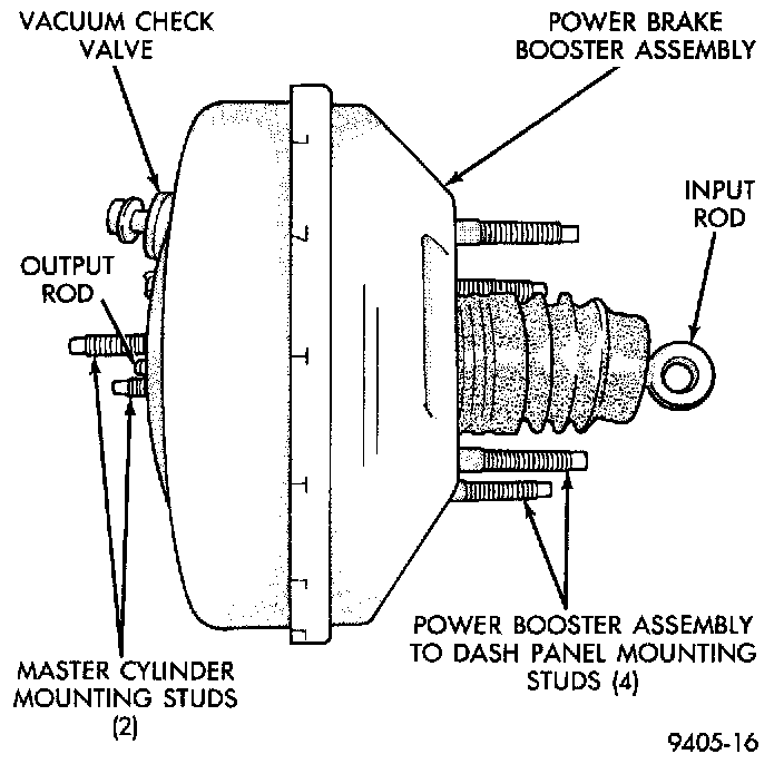 The power brake booster is vacuum-operated. The vacuum is supplied from the intake manifold on the engine through the power brake booster check valve.