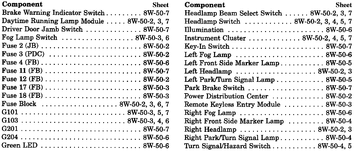 Front Lighting Component Index: