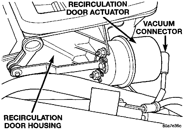 3. Remove two nuts retaining vacuum actuator to recirculation door housing.