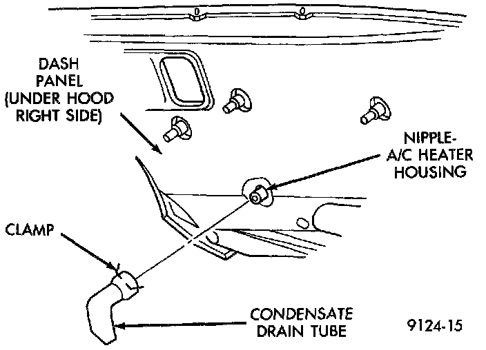 To install, reverse the preceding operation. Check the drain tube nipple on the heater-A/C housing for any obstructions.